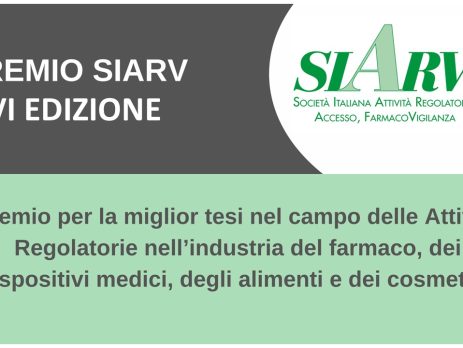 La SIARV - Società Italiana Attività Regolatorie, Accesso, FarmacoVigilanza - intende stimolare la ricerca in ambito accademico sui temi legati all'attività regolatorie del farmaco, dei dispositivi medici, degli alimenti e dei cosmetici. Per questo motivo, la SIARV – Società Italiana Attività Regolatorie - istituisce un Premio denominato “PREMIO SIARV”, quest’anno [...]