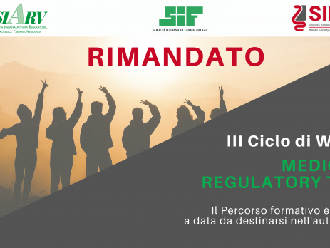 Il terzo Ciclo di Webinar – MEDICINES: REGULATORY TOOLS è rimandato a data da destinarsi