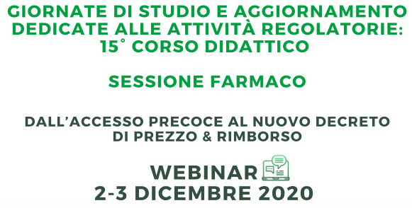2-3 Dicembre Webinar: 15° CORSO DIDATTICO – SESSIONE FARMACO