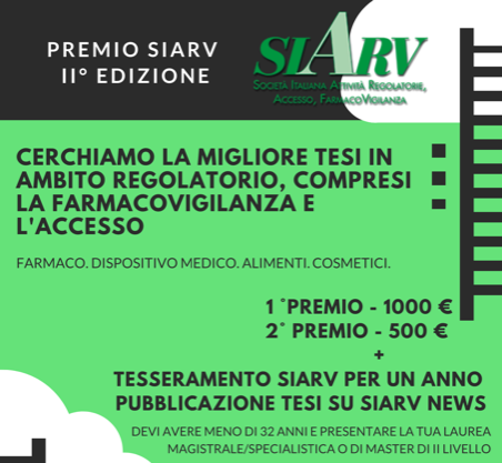 Durante il 66° seminario SIARV, tenutosi a Milano a febbraio del 2019 decidemmo di dare vita all’iniziativa del Previo SIARV, un premio dedicato ai giovani ed alle giovani che si stanno formando e hanno realizzato una tesi nelle discipline regolatorie del farmaco, del dispositivo medico, degli alimenti e dei cosmetici affinché potessimo coinvolgere nelle attività della nostra associazione le generazioni più giovani ma soprattutto per poter dare loro un riconoscimento e un momento di visibilità.