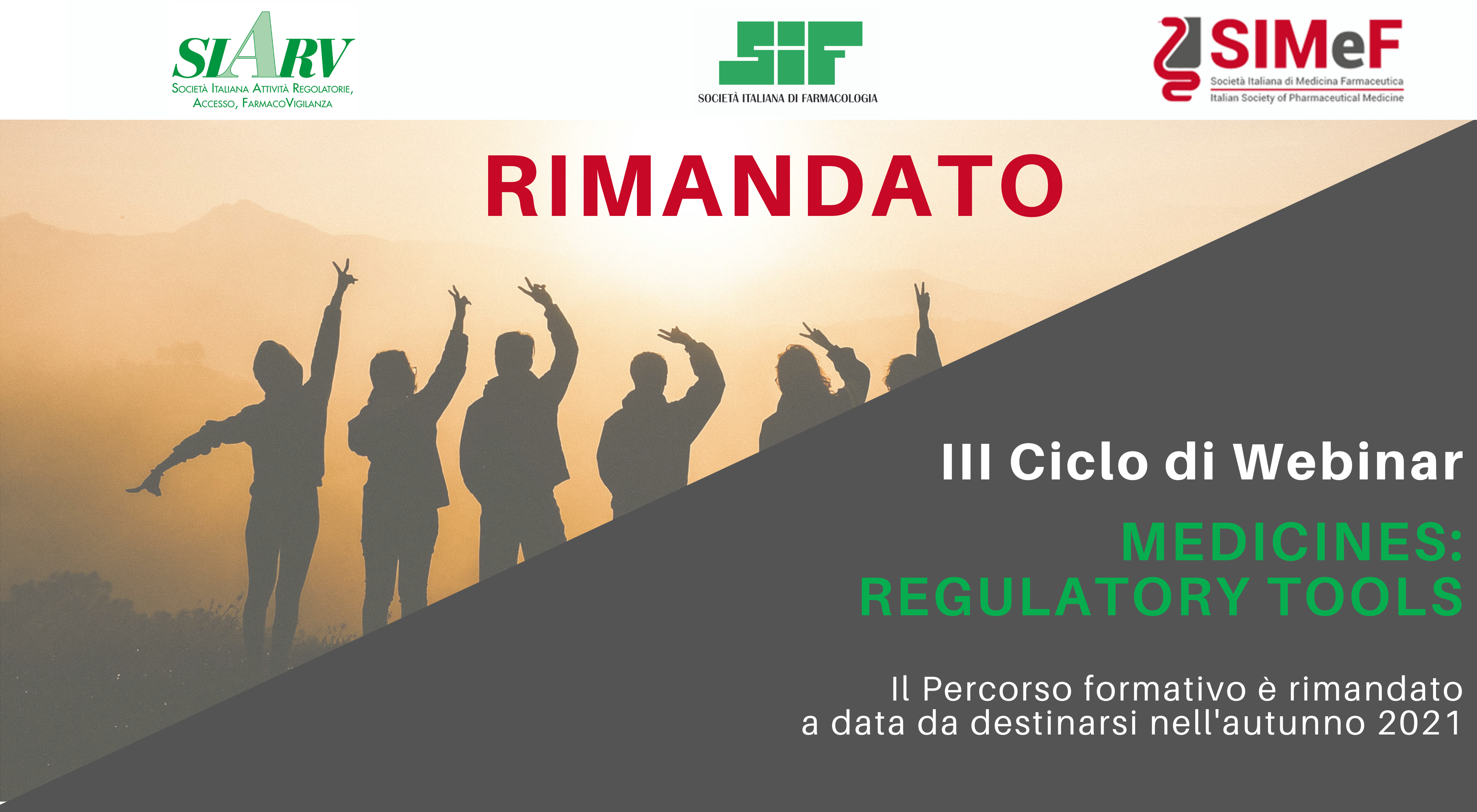 Il terzo Ciclo di Webinar – MEDICINES: REGULATORY TOOLS è rimandato a data da destinarsi