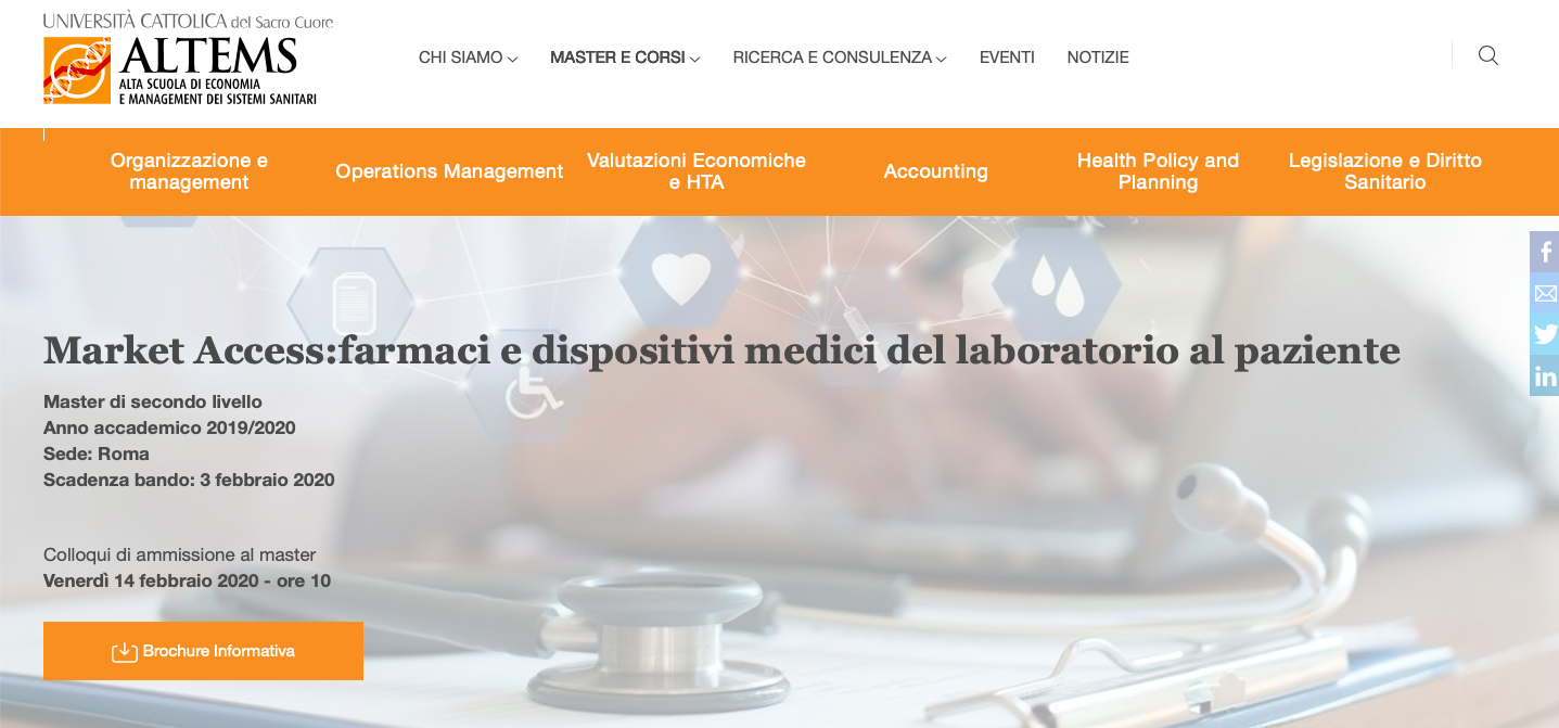 Patrocinio SIARV per il Master ALTEMS in ”Market Access-Farmaci e dispositivi medici dal laboratorio al paziente”