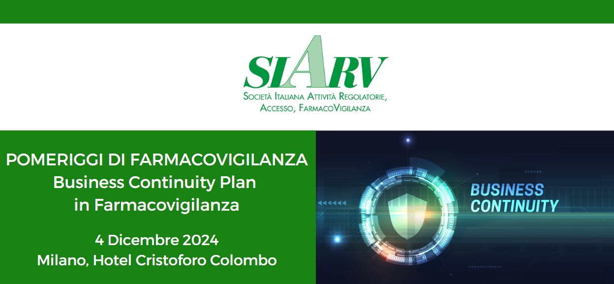 POMERIGGI DI FARMACOVIGILANZA – Business Continuity Plan in Farmacovigilanza